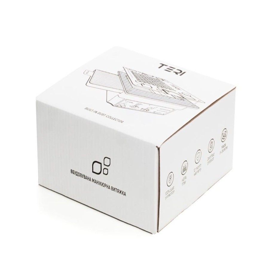 El Aspirador de manicura con más capacidad de succión del mercado sin precedentes (1000m³/hora) además de un filtrado de aire 100% gracias a su filtro HEPA, el cual retiene hasta la más mínima partícula filtrando el aire y purificándolo.También protege el motor del ventilador y la electrónica contra el polvo, ¡Lo que confiere al aparato una vida útil extremadamente larga!  Se recomienda cambiar el filtro una vez al mes. El HEPA (aire de partículas de alta eficiencia en inglés o suspensión de partículas de alta eficiencia) es un filtro de aire de alto rendimiento. Utilizado en aspiradoras, sistemas de purificación de aire y sistemas de ventilación y aire acondicionado. El aspirador Teri 1000m está fabricado en plástico ABS con elementos de acero inoxidable y aluminio anodizado. El tamaño compacto y la enorme potencia lo convierten en una opción ideal para un manicurista que valora su salud y la salud de sus clientes. Todos los componentes electrónicos se encuentran herméticamente cerrado, lo que hace que sea imposible acceder involuntariamente a los cables.