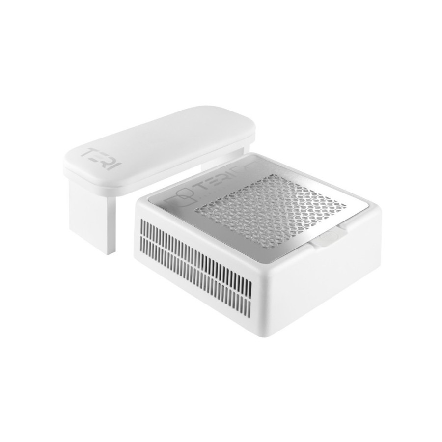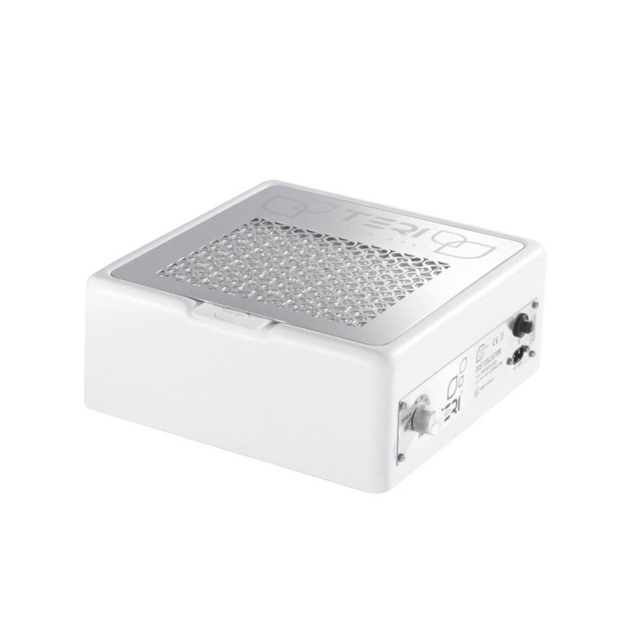El Aspirador de manicura con gran capacidad de succión además de un filtrado de aire 100% gracias a su filtro HEPA, el cual retiene hasta la más mínima partícula filtrando el aire y purificándolo. También protege el motor del ventilador y la electrónica contra el polvo, ¡Lo que confiere al aparato una vida útil extremadamente larga!  Se recomienda cambiar el filtro una vez al mes. El HEPA (aire de partículas de alta eficiencia en inglés o suspensión de partículas de alta eficiencia) es un filtro de aire de alto rendimiento. Utilizado en aspiradoras, sistemas de purificación de aire y sistemas de ventilación y aire acondicionado. El aspirador Teri 1000m está fabricado en plástico ABS con elementos de acero inoxidable y aluminio anodizado. El tamaño compacto y la enorme potencia lo convierten en una opción ideal para un manicurista que valora su salud y la salud de sus clientes. Todos los componentes electrónicos se encuentran herméticamente cerrado, lo que hace que sea imposible acceder involuntariamente a los cables.