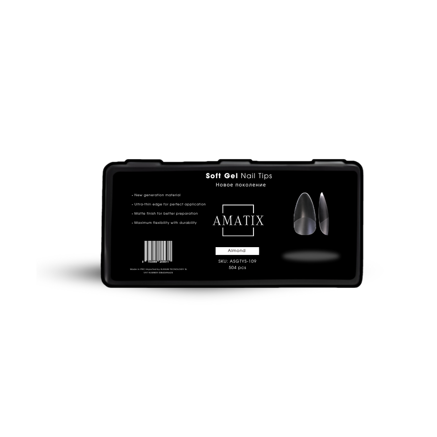 Los Soft Gel Nail Tips de Amatix están diseñados con material de nueva generación que combina flexibilidad, durabilidad y comodidad. Su borde ultra fino permite una aplicación perfecta, y su acabado mate facilita la preparación y adherencia del producto. Disponibles en cinco formas diferentes, se adaptan a todos los estilos, desde lo natural hasta lo más atrevido. Cada caja contiene 504 piezas, asegurando una amplia variedad para personalizar cada manicura.