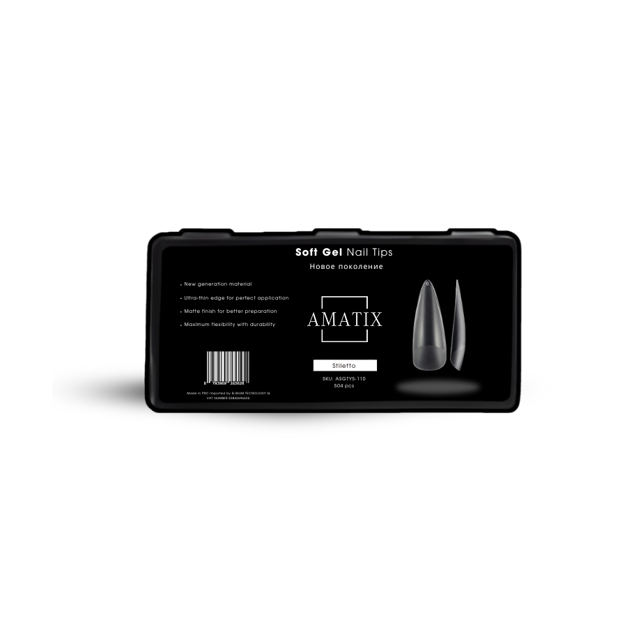 Amatix Soft Gel Nail Tips Stiletto 504uni 12 tamaños