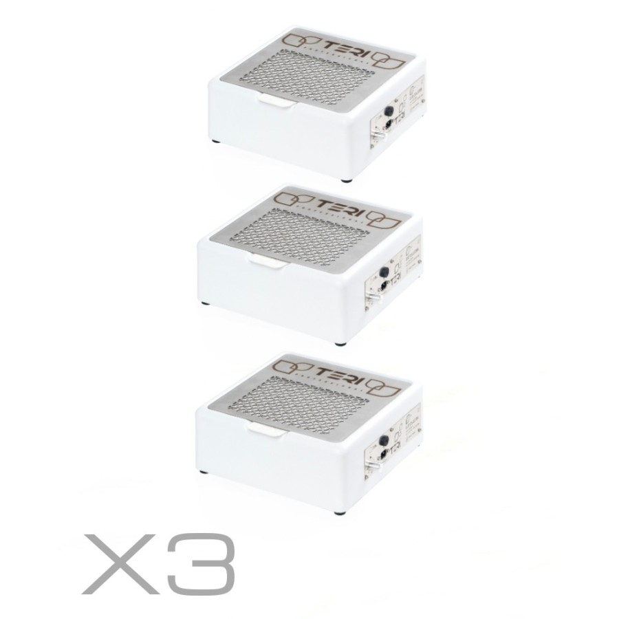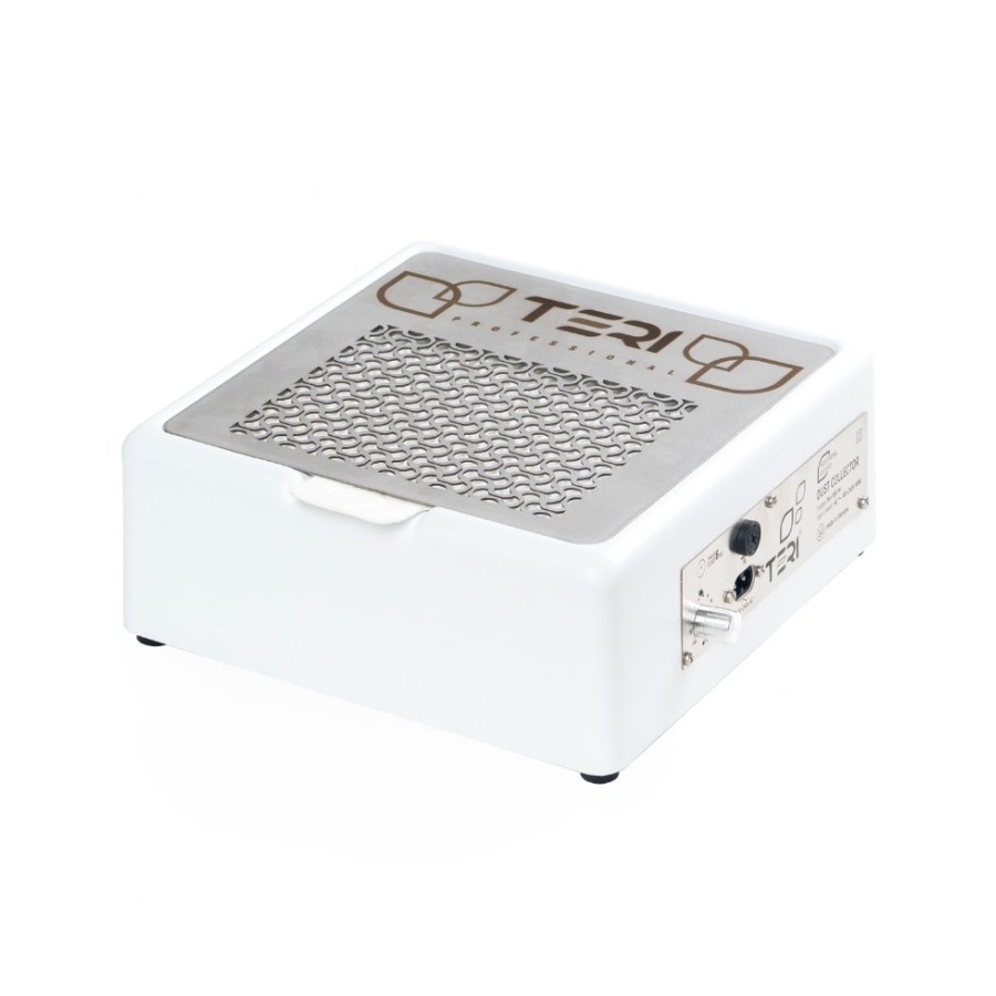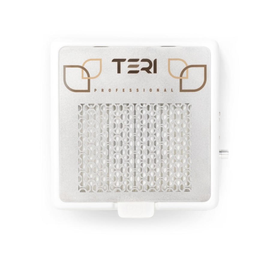 Aspirador compacto de alta capacidad de succión (500m³/hora 1,4 a 3 metros por segundo) además de un filtrado de aire 100% gracias a su filtro HEPA, el cual retiene hasta la más mínima partícula filtrando el aire y purificándolo. También protege el motor del ventilador y la electrónica contra el polvo, ¡Lo que confiere al aparato una vida útil extremadamente larga!  Se recomienda cambiar el filtro una vez al mes. El HEPA (aire de partículas de alta eficiencia en inglés o suspensión de partículas de alta eficiencia) es un filtro de aire de alto rendimiento. Utilizado en aspiradoras, sistemas de purificación de aire y sistemas de ventilación y aire acondicionado. El aspirador Teri500m está fabricado en plástico ABS con elementos de acero inoxidable y aluminio anodizado. El tamaño compacto y la enorme potencia lo convierten en una opción ideal para un manicurista que valora su salud y la salud de sus clientes. Todos los componentes electrónicos se encuentran herméticamente cerrado, lo que hace que sea imposible acceder involuntariamente a los cables.