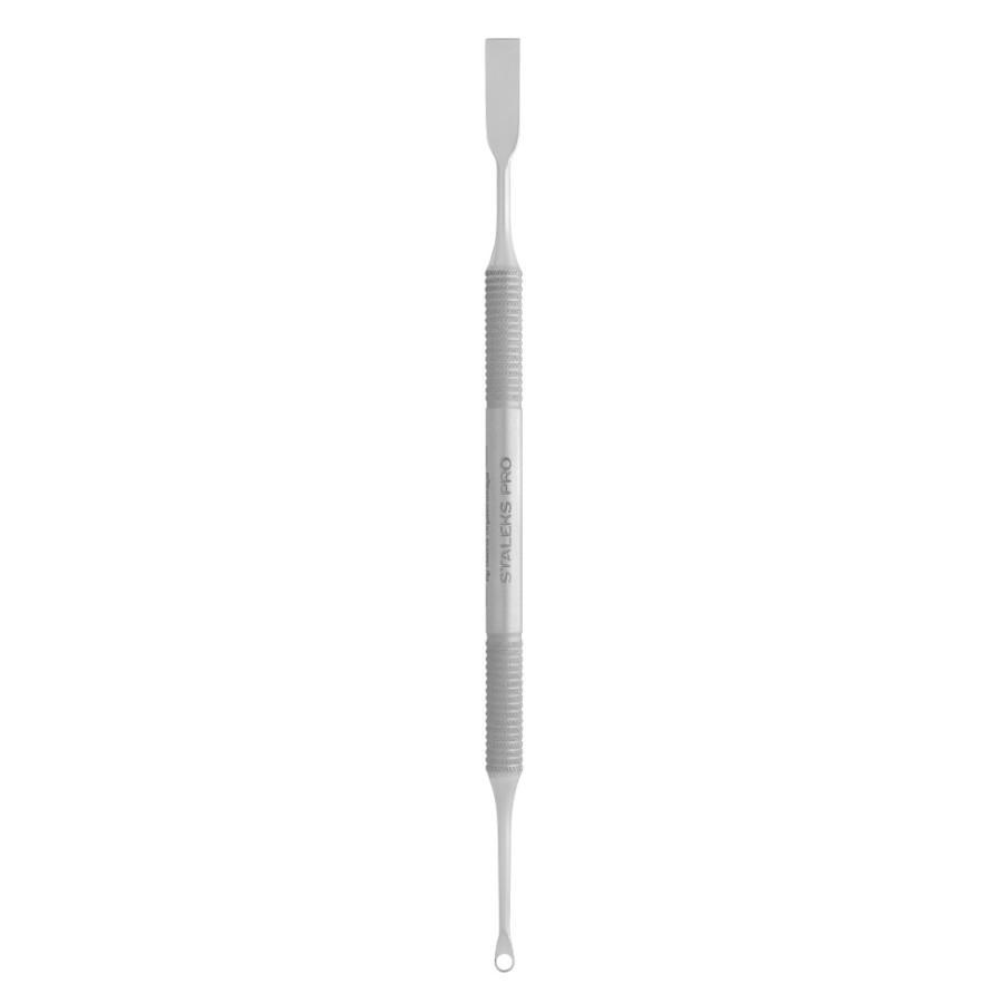 La línea de Staleks Pro pone a tu disposición un pusher de una calidad superior. Este pusher está diseñado específicamente para deslizarse sobre la uña sin provocar ninguna agresión tanto a la uña como a la cutícula. Su contorno redondeado, delgado y afilado nos permite deslizarnos por el surco de una manera fácil y segura. El otro extremo del pusher nos permitirá una correcta limpieza.
