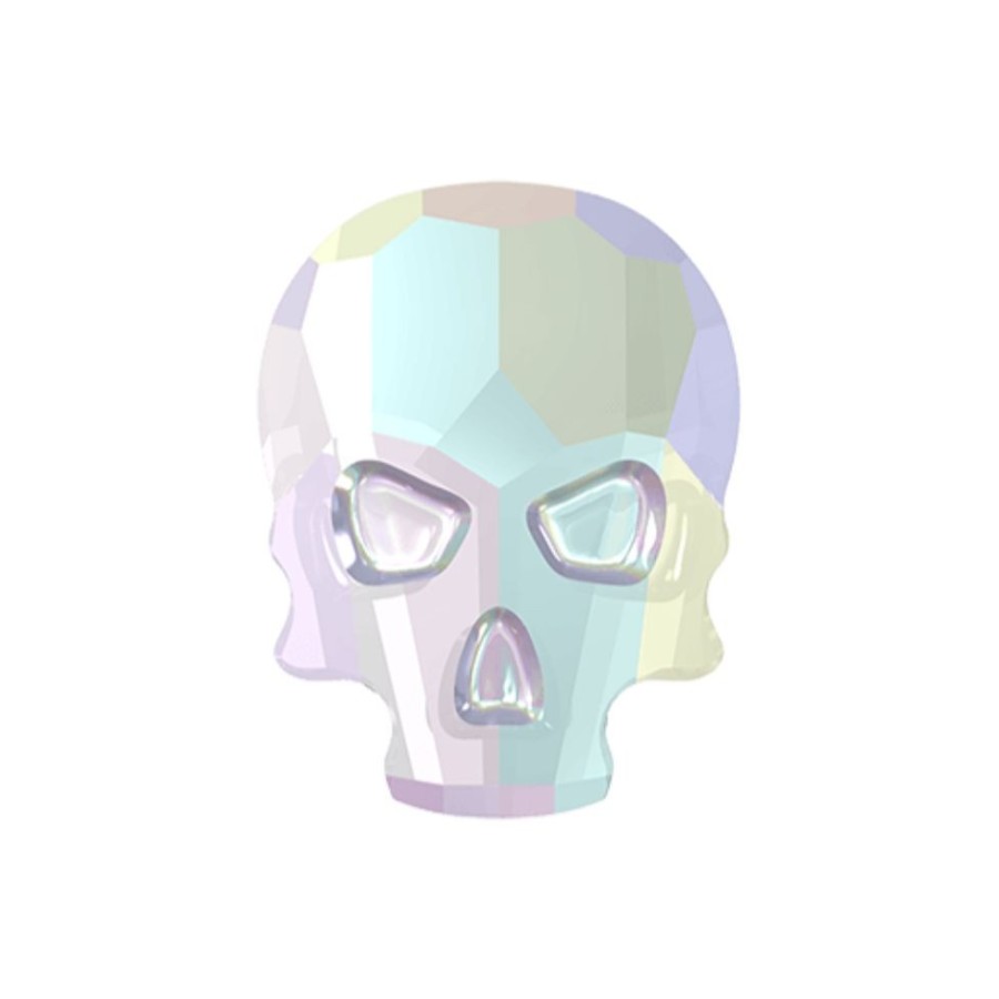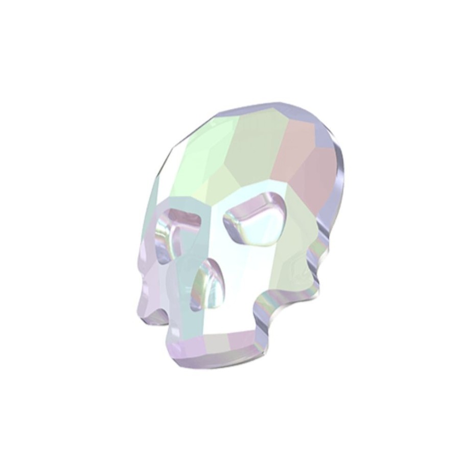 Esta versión Flat Back del popular símbolo de calavera es la primera incorporación de este tipo en el surtido de Flat Back de Swarovski. Su contorno perfectamente diseñado y su innovadora talla con precisas facetas aportan a la Skull Flat Back un look icónico que añade un encanto contemporáneo y ligeramente masculino a cualquier diseño. Esta provocadora pieza queda especialmente bien en las prendas de ropa casuales de estilo rebelde, y no solo responde a la tendencia de la urbanización, pero también a los diseños unisex con un sutil toque de brillo.