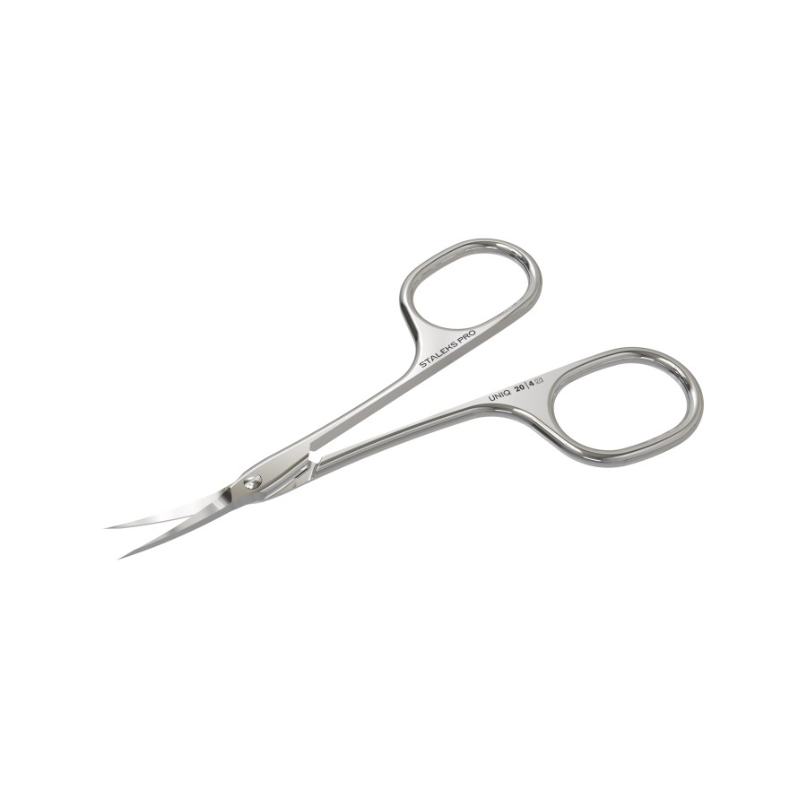 - Mangos de diferentes longitudes (anillo izquierdo abajo) proporcionan una cómoda posición natural de los dedos durante el trabajo. Se recomienda probar las tijeras en la mano y elegir el modelo más adecuado, teniendo en cuenta las necesidades y preferencias individuales. Si no es posible, este modelo con el anillo izquierdo más bajo puede ser más adecuado para manicuristas con manos medianas o grandes.